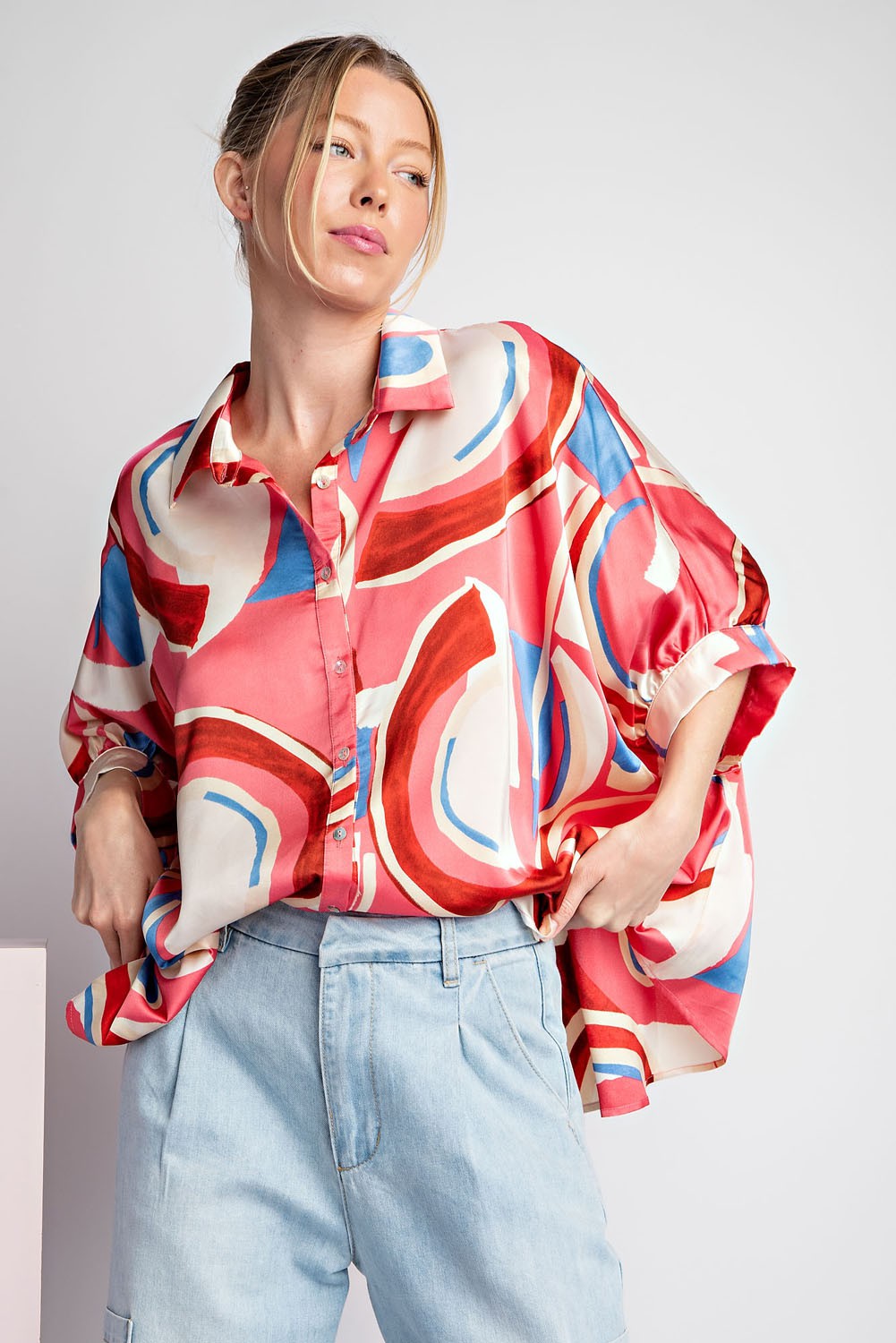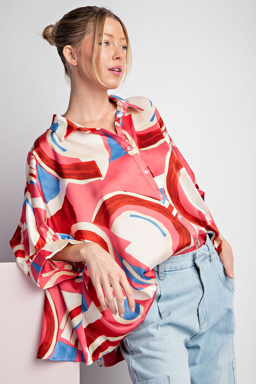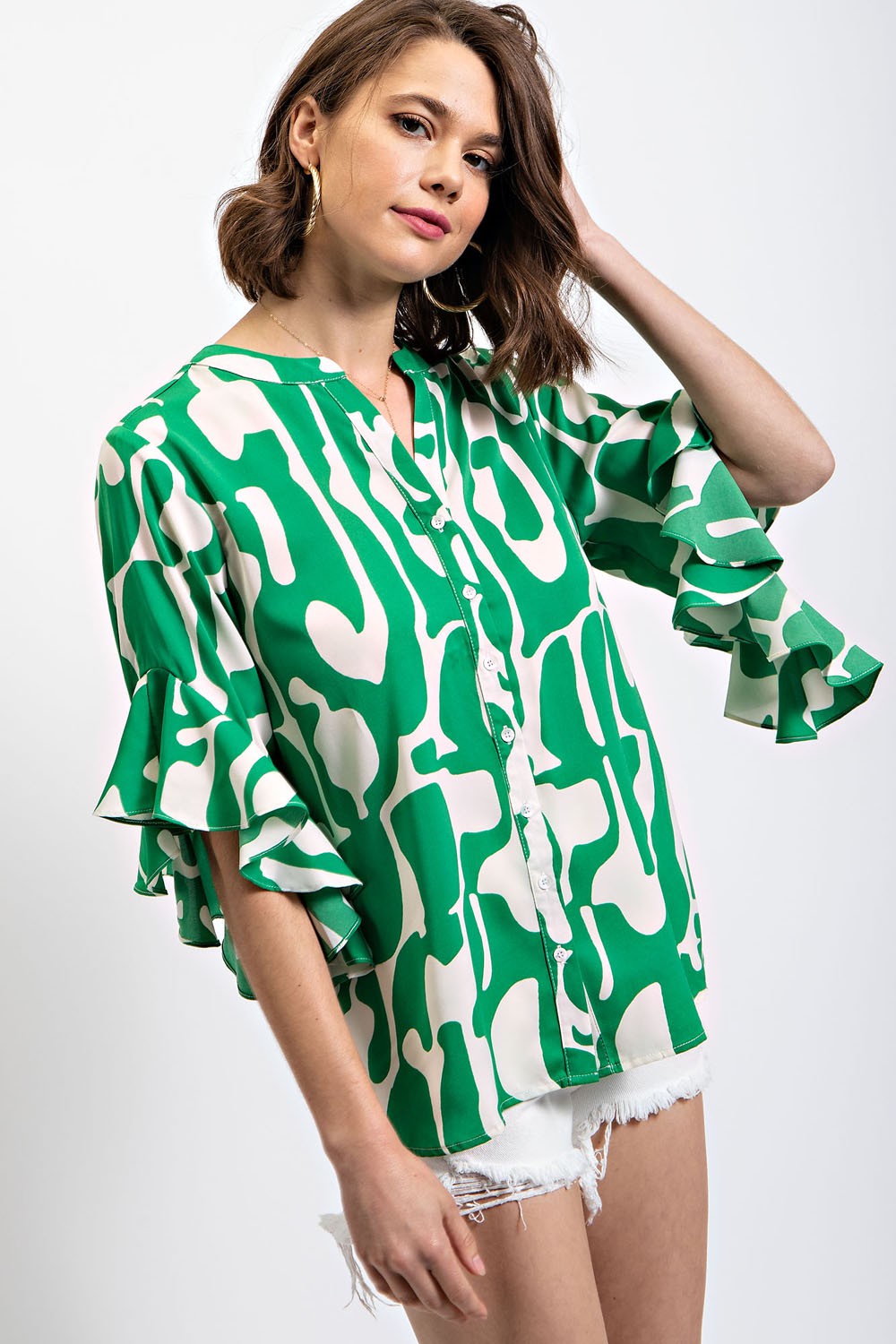 Geometric Print Button Up Top