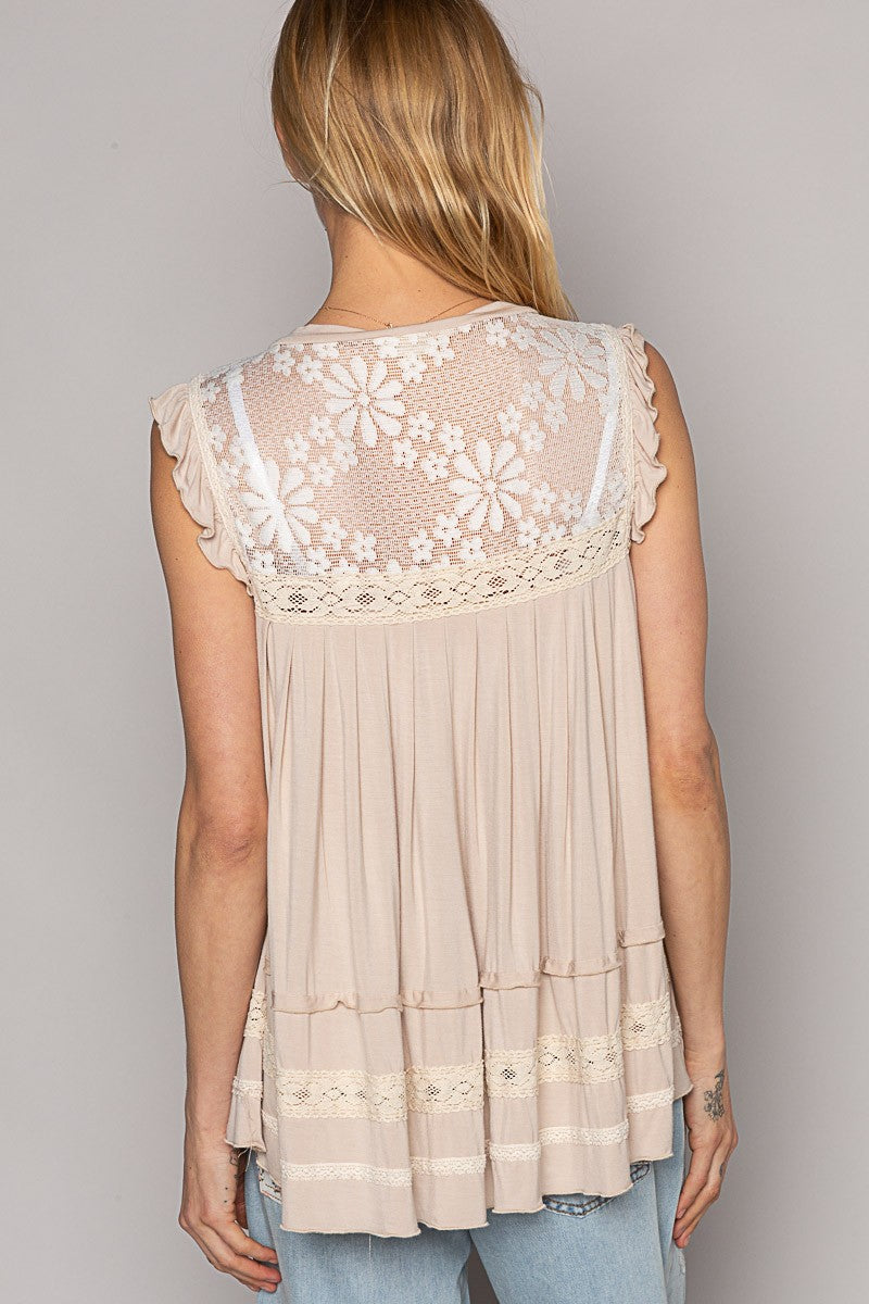 Lace and Ruffle Zip Front Top