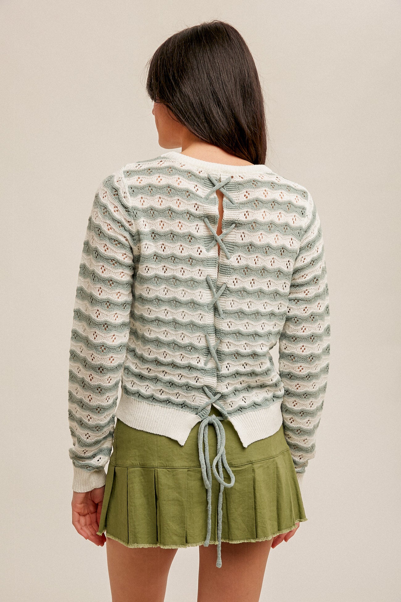Lace Back Pointelle Knit Sweater