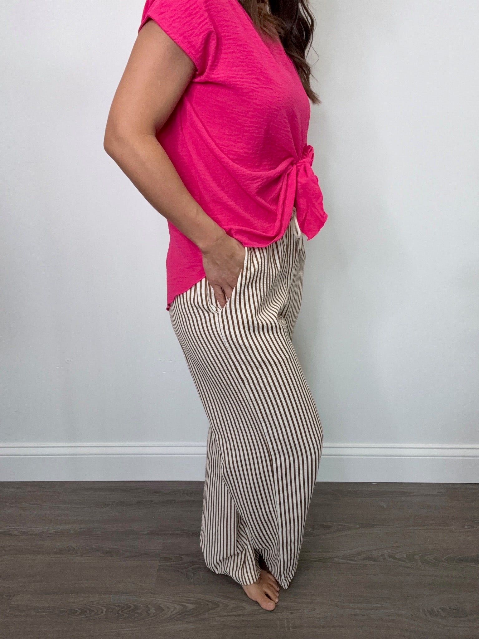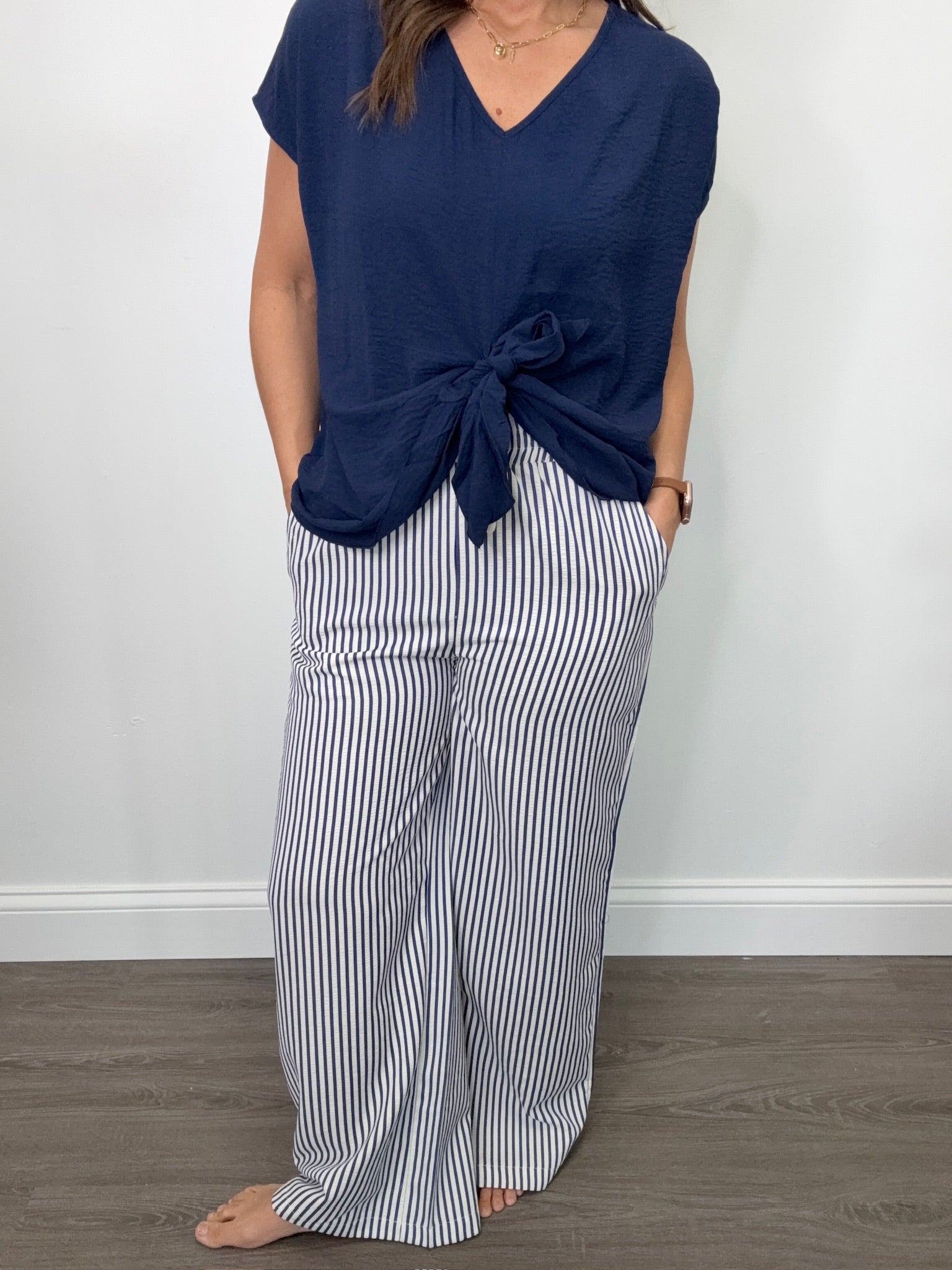 Relax in style with our Seaside Striped Wide-Leg Lounge Pants. Designed for effortless comfort and timeless appeal, these pants feature a chic vertical stripe pattern that elongates the legs and flatters every figure. Made from a lightweight, breathable fabric, they’re perfect for casual outings, lounging, or travel days. The adjustable drawstring waist ensures the perfect fit every time.