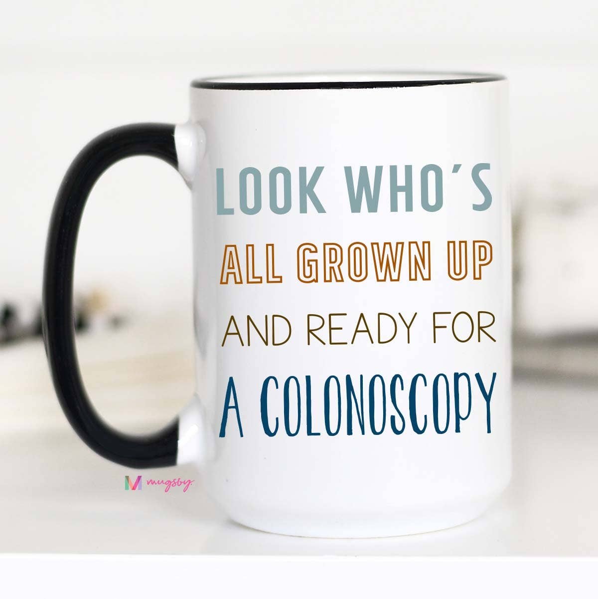 Double sided print. Top rack dishwasher safe. Microwave safe. Off white with a black rim and handle. Made of ceramic.