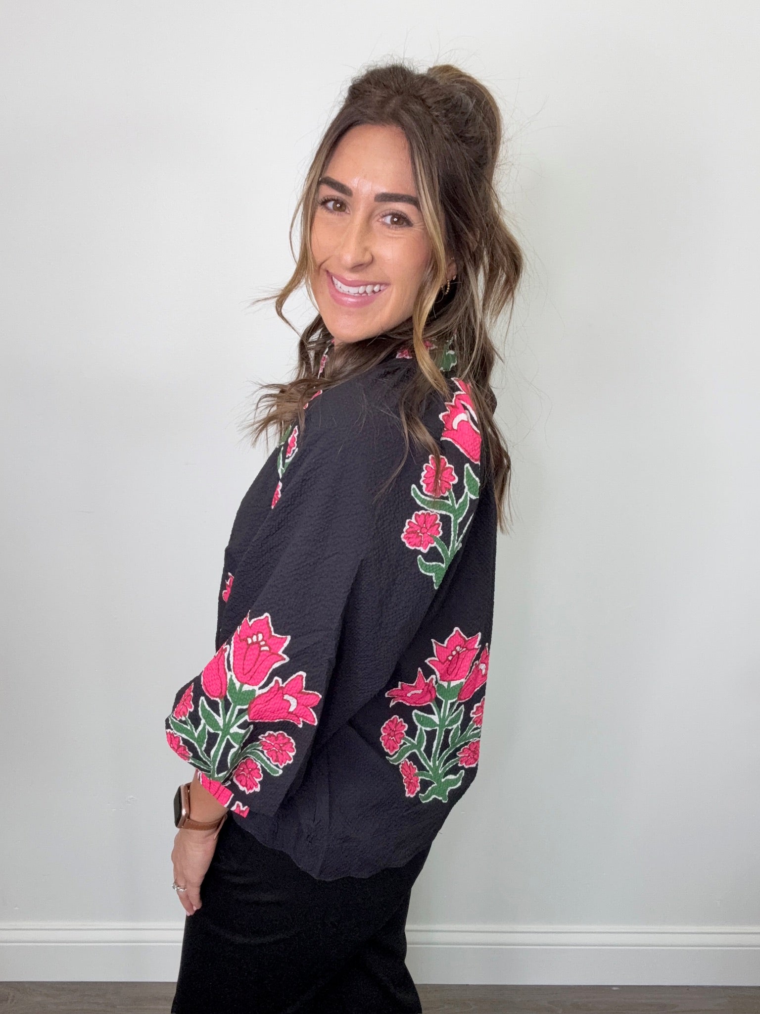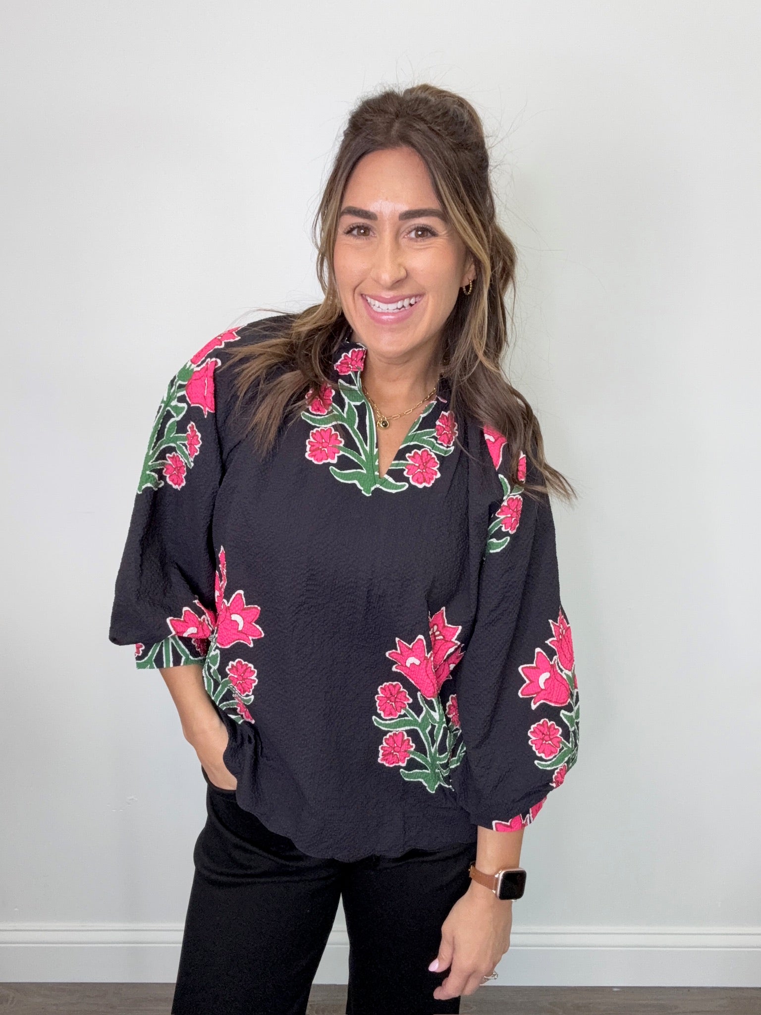 Bubble Sleeve Tulip Print Top