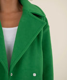 Add a pop of color to your wardrobe with this notch collar short jacket in a brilliant green hue. Designed with sleek welt side pockets and a playful vibe, it’s the perfect layering piece to brighten up any look—stylish, bold, and just plain fun.