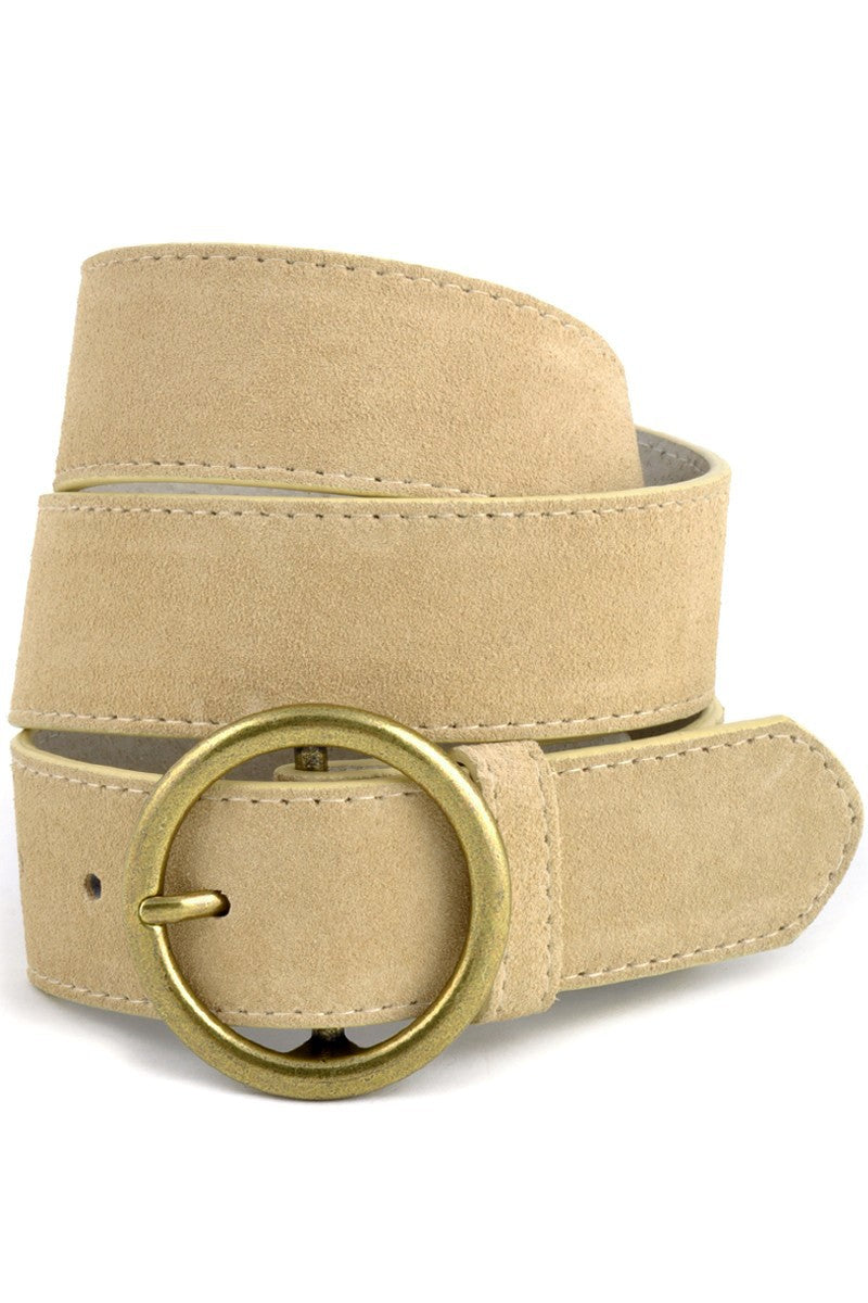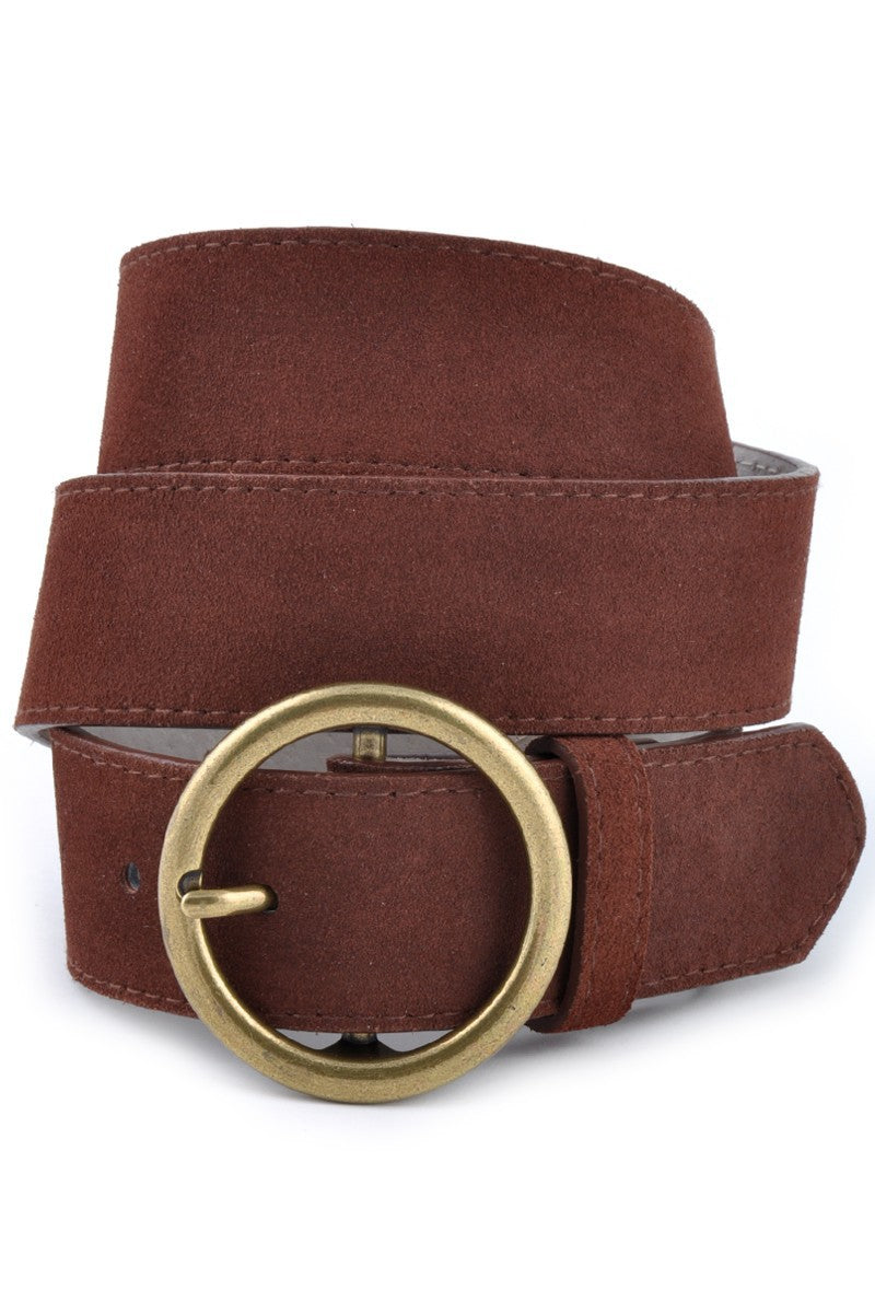 Suede Belt with Round Brass Buckle