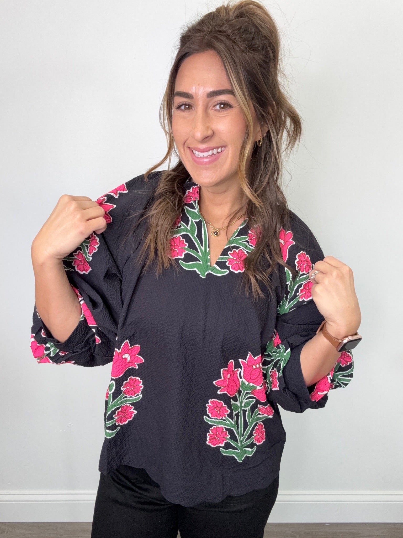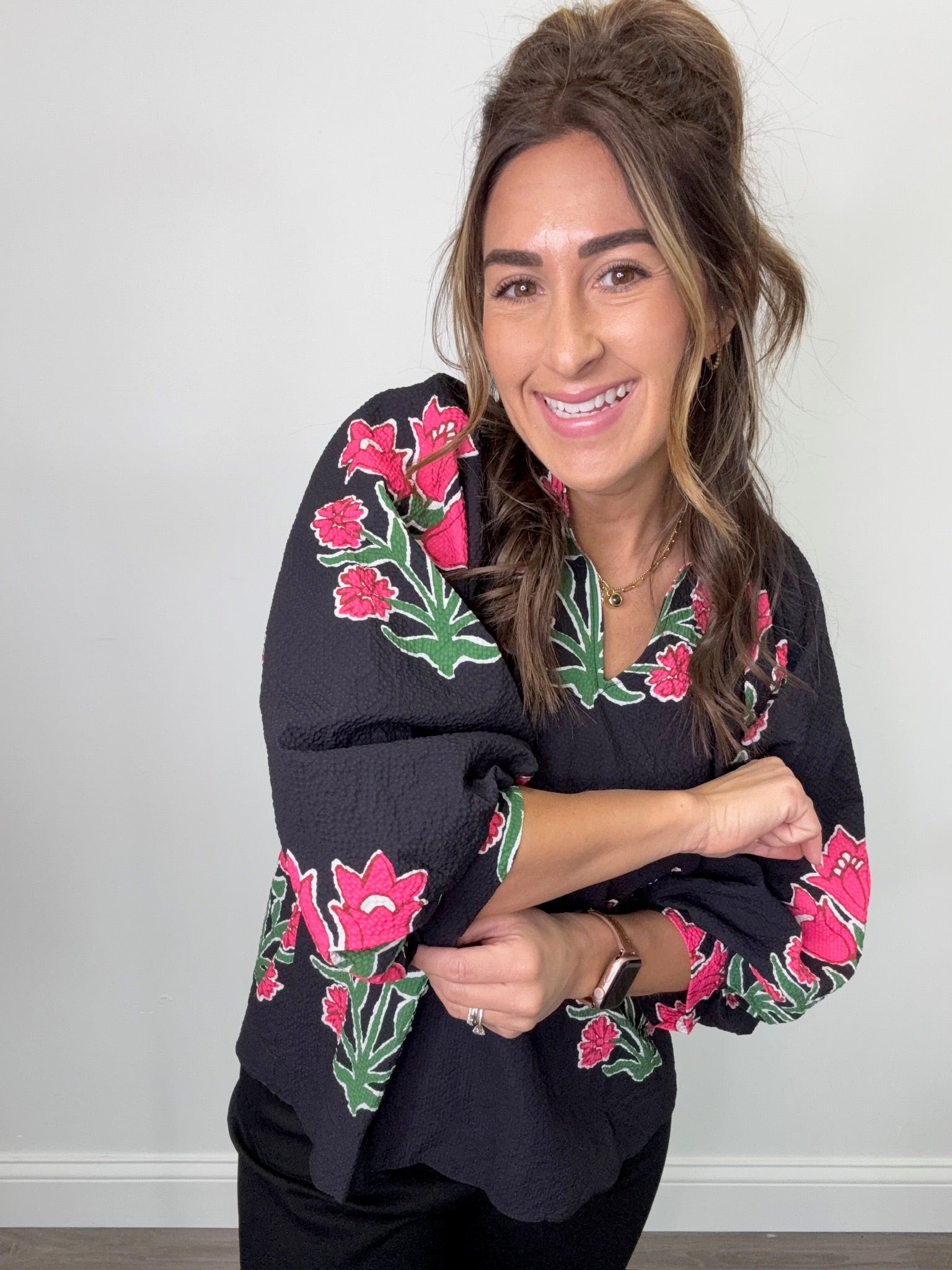 Bubble Sleeve Tulip Print Top