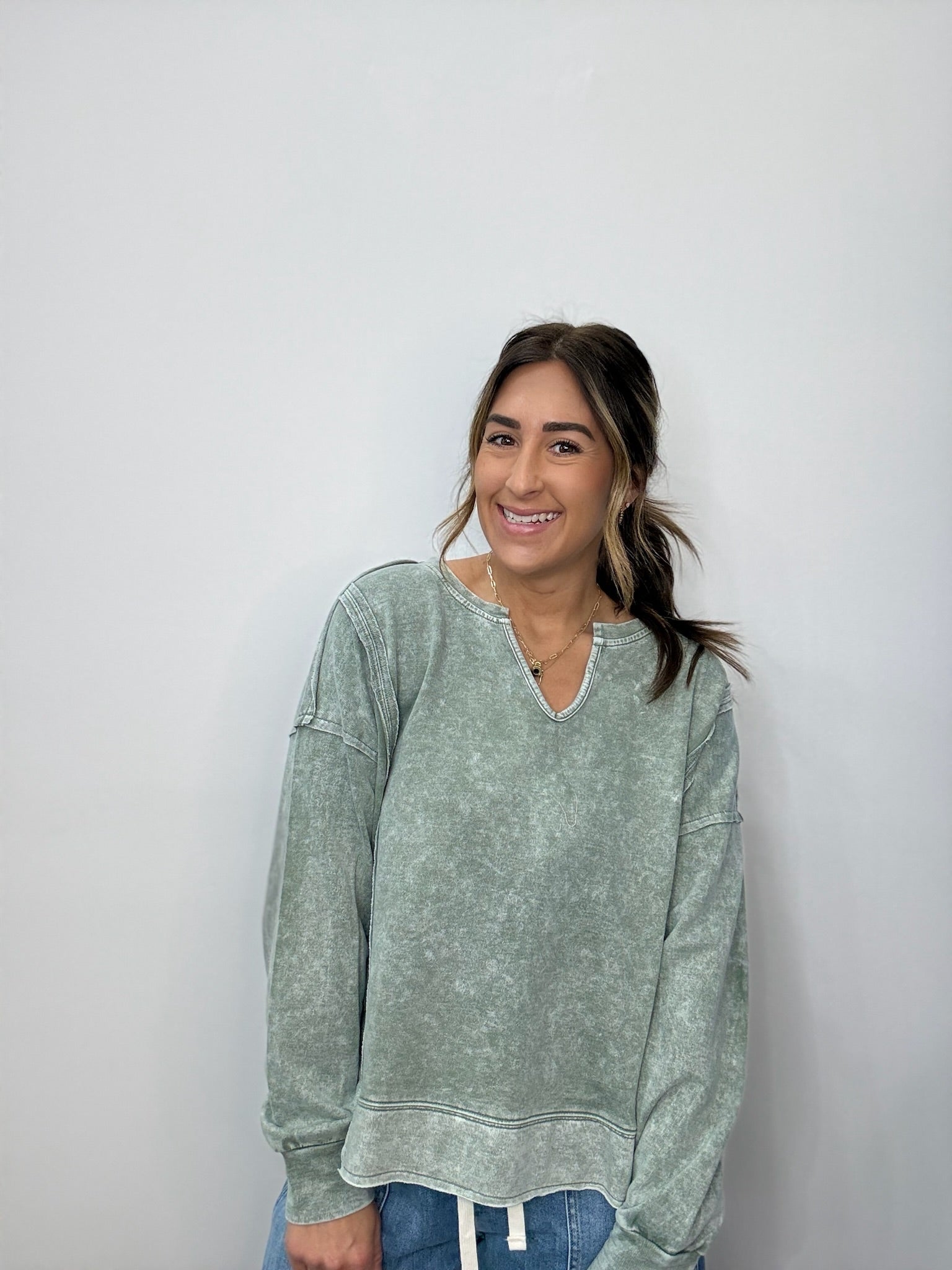 Split Neck Ribbed Top