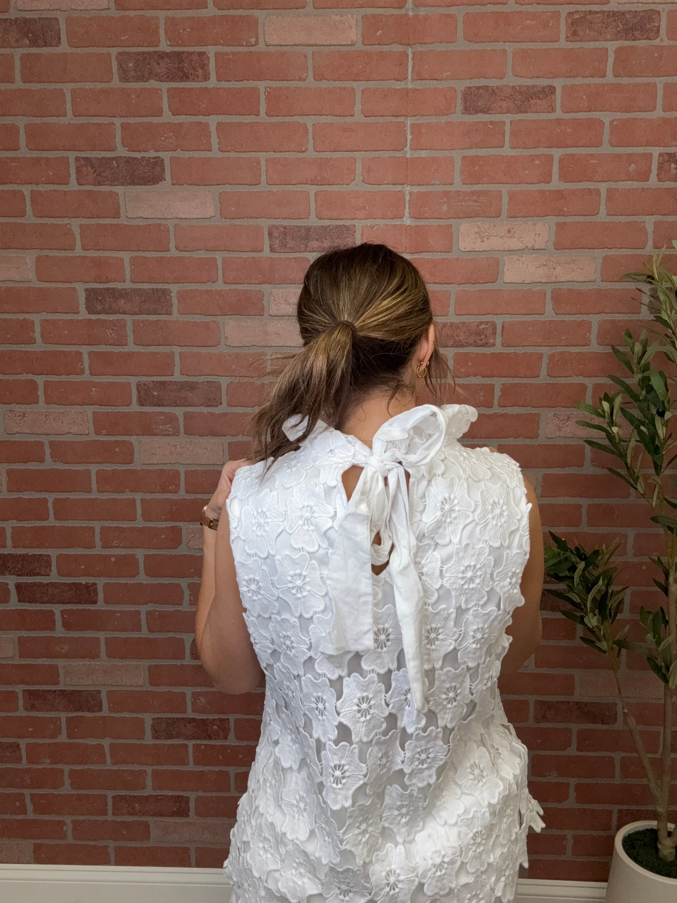 Back Bow Floral Lace Top