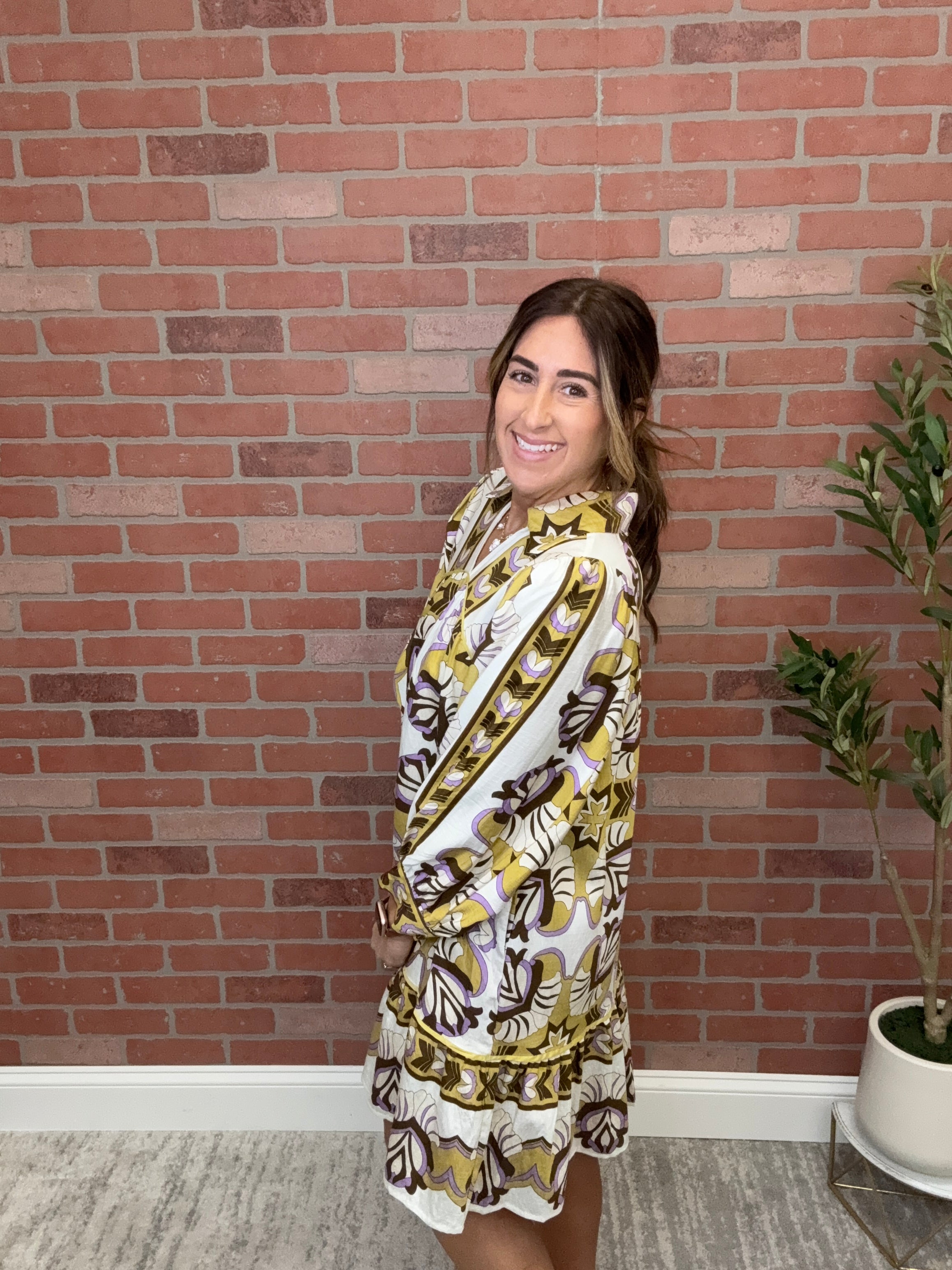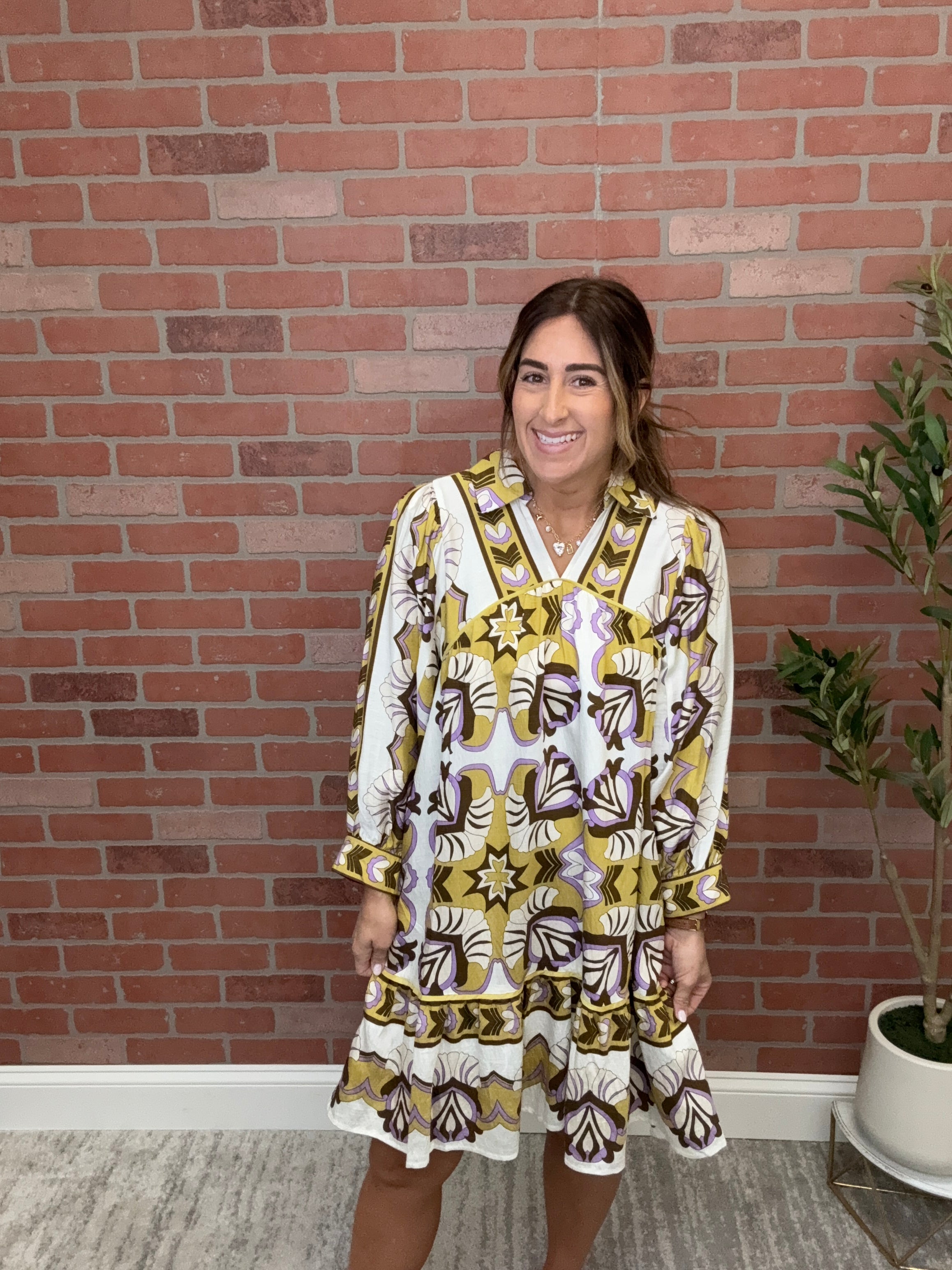 Border Print Tiered Mini Dress
