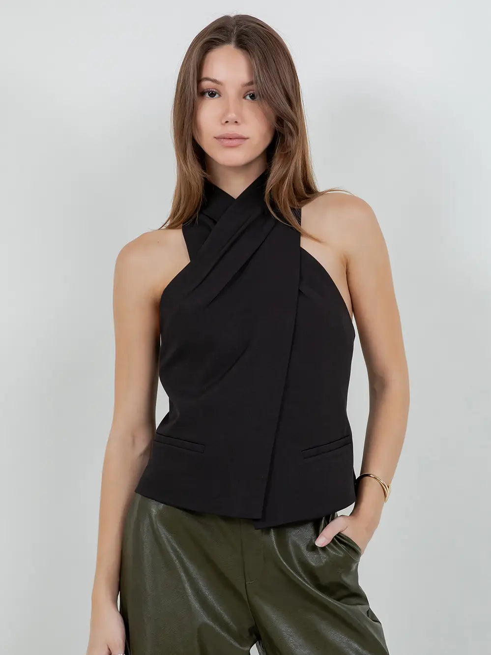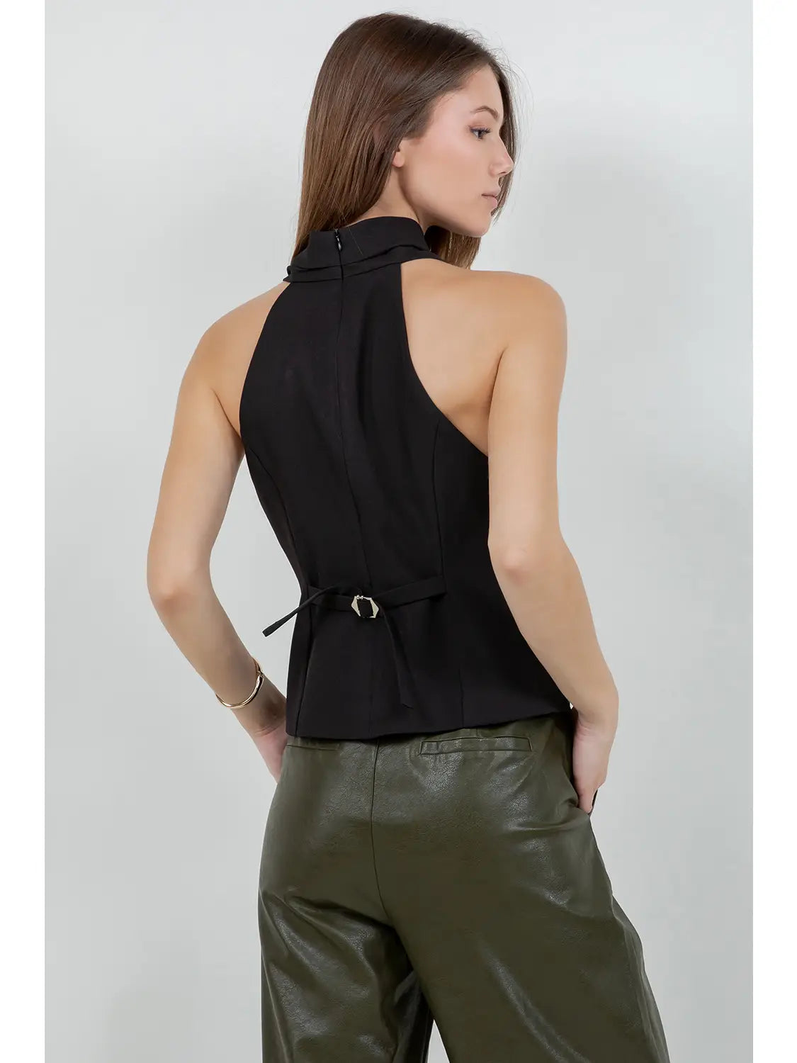 Sleeveless Halter Woven Top