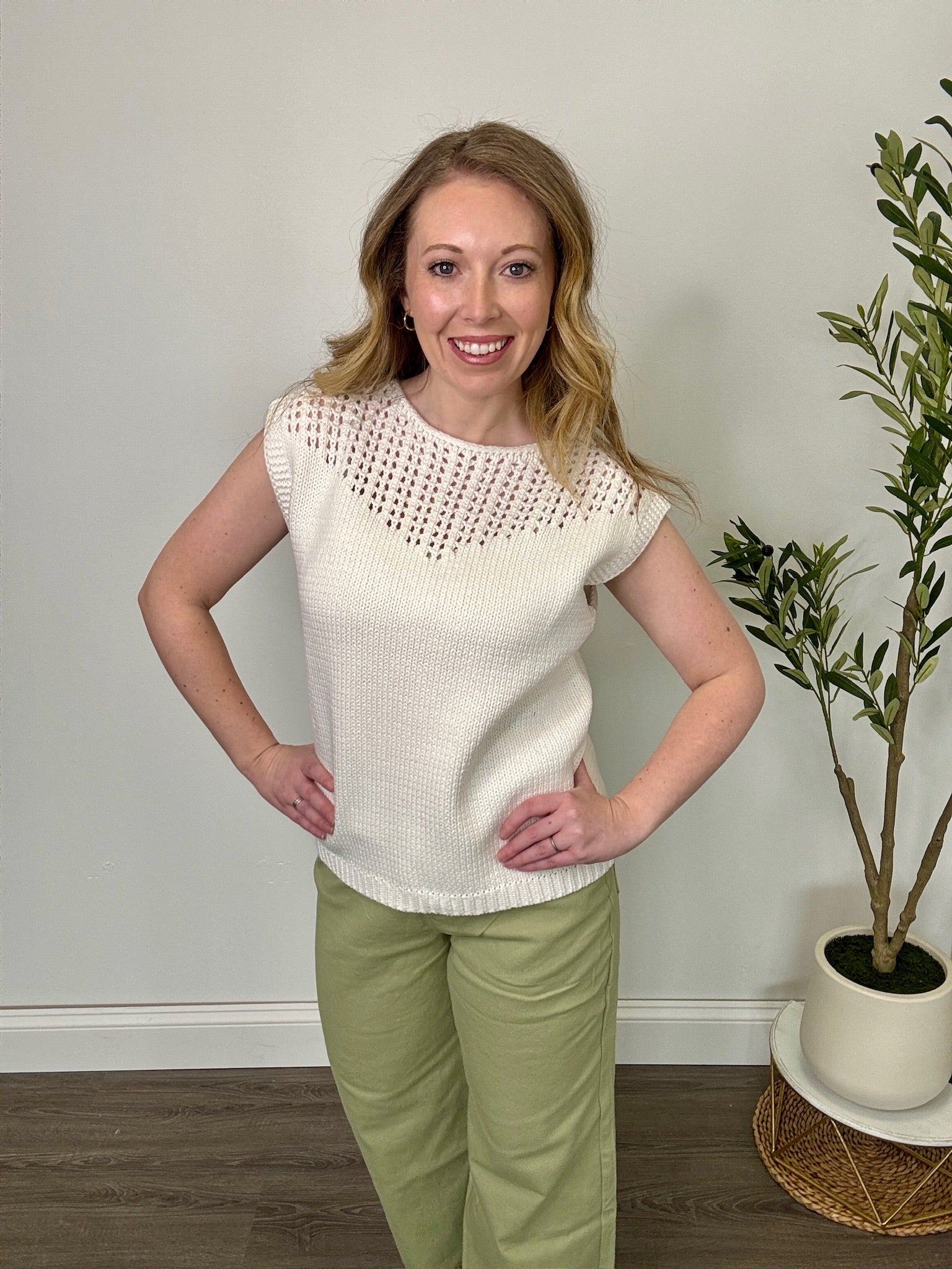 Open-knit Front Yoke Sweater Top