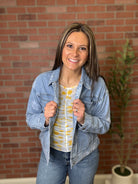 Effortless spring style meets timeless denim with the Daisy Denim Jacket. Crafted in a lightweight fabric, this piece layers beautifully over everything from casual tees to flowing dresses. The relaxed fit and classic silhouette make it a wardrobe essential that transitions seamlessly from cool mornings to warmer afternoons. Perfect for adding an edge to your seasonal rotation.