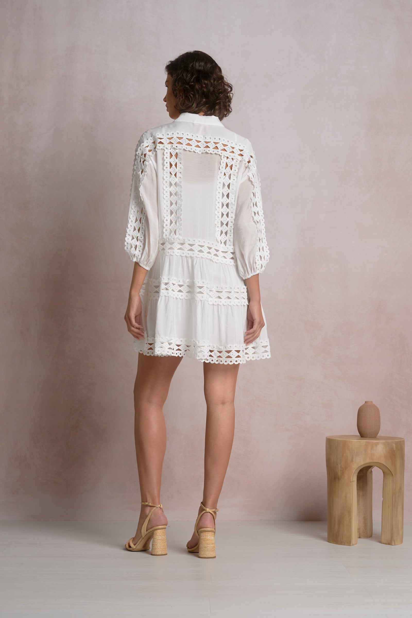 Feminine, breezy, and effortlessly elegant, this crochet trim vacation mini dress is the perfect piece for sunny getaways and warm-weather occasions. Designed with beautiful intricate crochet detailing throughout, this dress blends delicate texture with a relaxed, flowy silhouette.