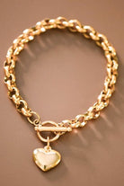 18K gold plated stainless steel chain link bracelet with heart charm. The bracelet is hypoallergenic, waterproof, fade-resistant, and tarnish-free