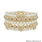 Set of 5 Gold Beaded and Pearl Stretch Bracelets