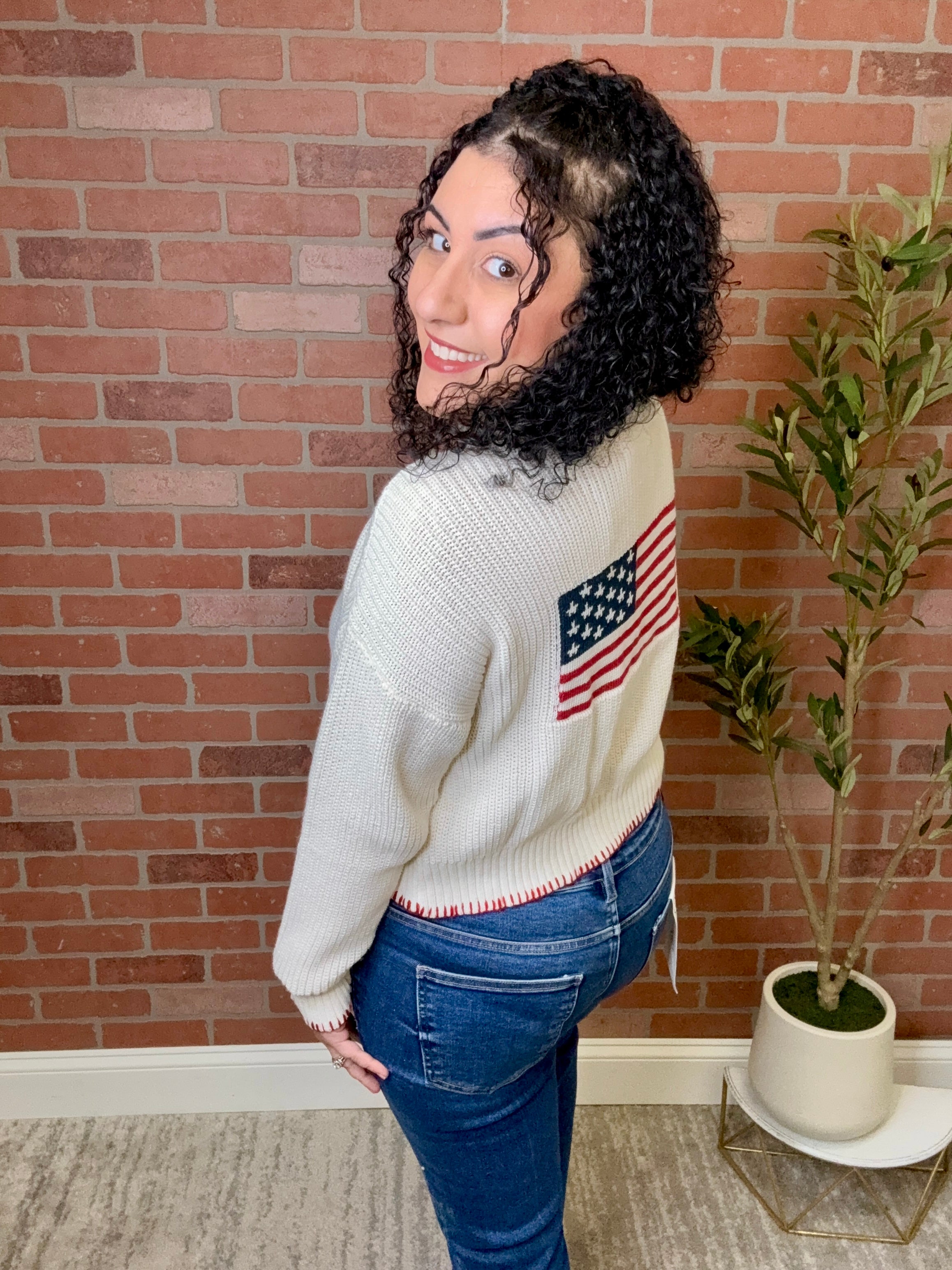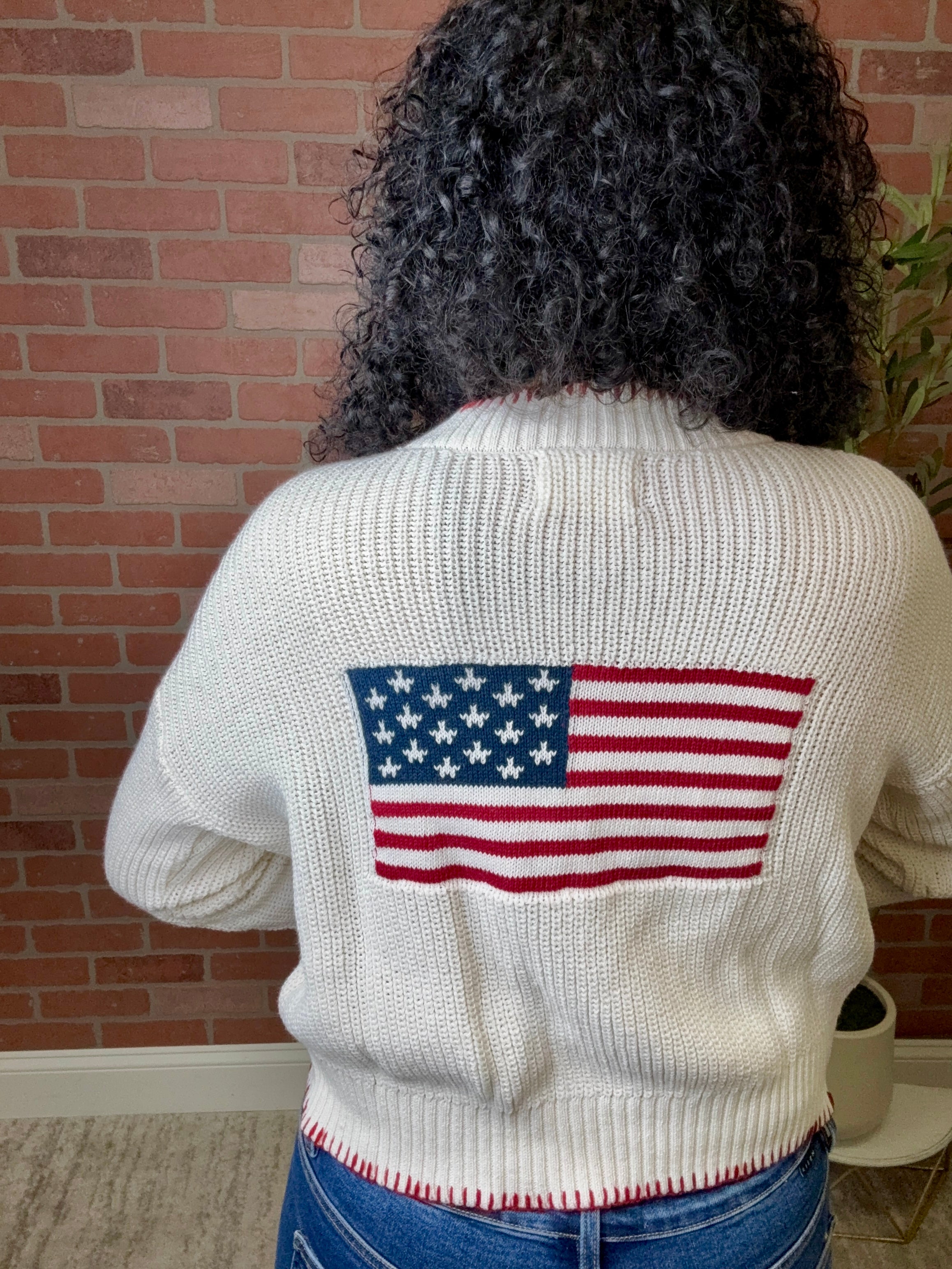 Celebrate patriotic style with this classic American Flag Cardigan. Featuring iconic red, white, and blue design elements, this versatile piece layers effortlessly over your favorite tees and dresses. Perfect for holidays, casual outings, or showing your pride year-round. Crafted for comfort and durability, it's a wardrobe essential that transitions seamlessly from season to season.