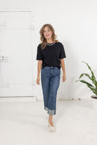 Who says a T-shirt can’t make an entrance? The Soirée Tee takes your classic cotton staple and gives it a serious glow-up with dazzling rhinestone embellishments framing the neckline. Made from ultra-soft 100% cotton, it feels buttery smooth while bringing that elevated sparkle perfect for date nights, parties, or anywhere you want to shine a little brighter. Simple, chic, and oh-so-luxurious — this is the definition of “casual couture.”