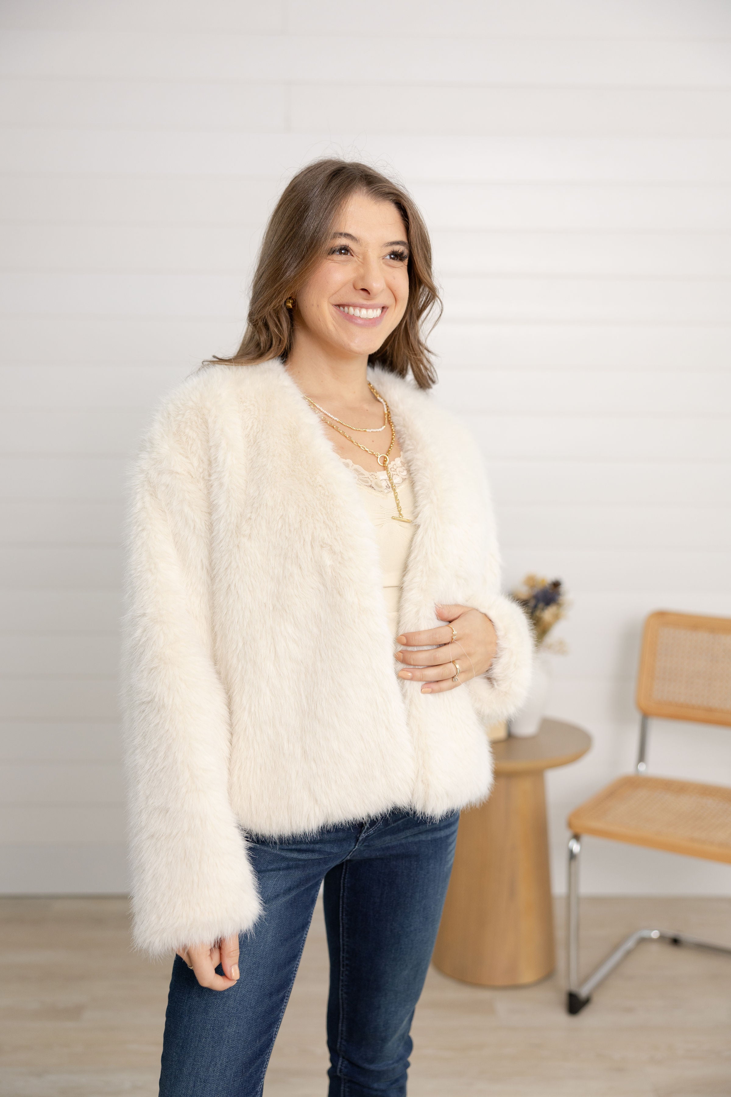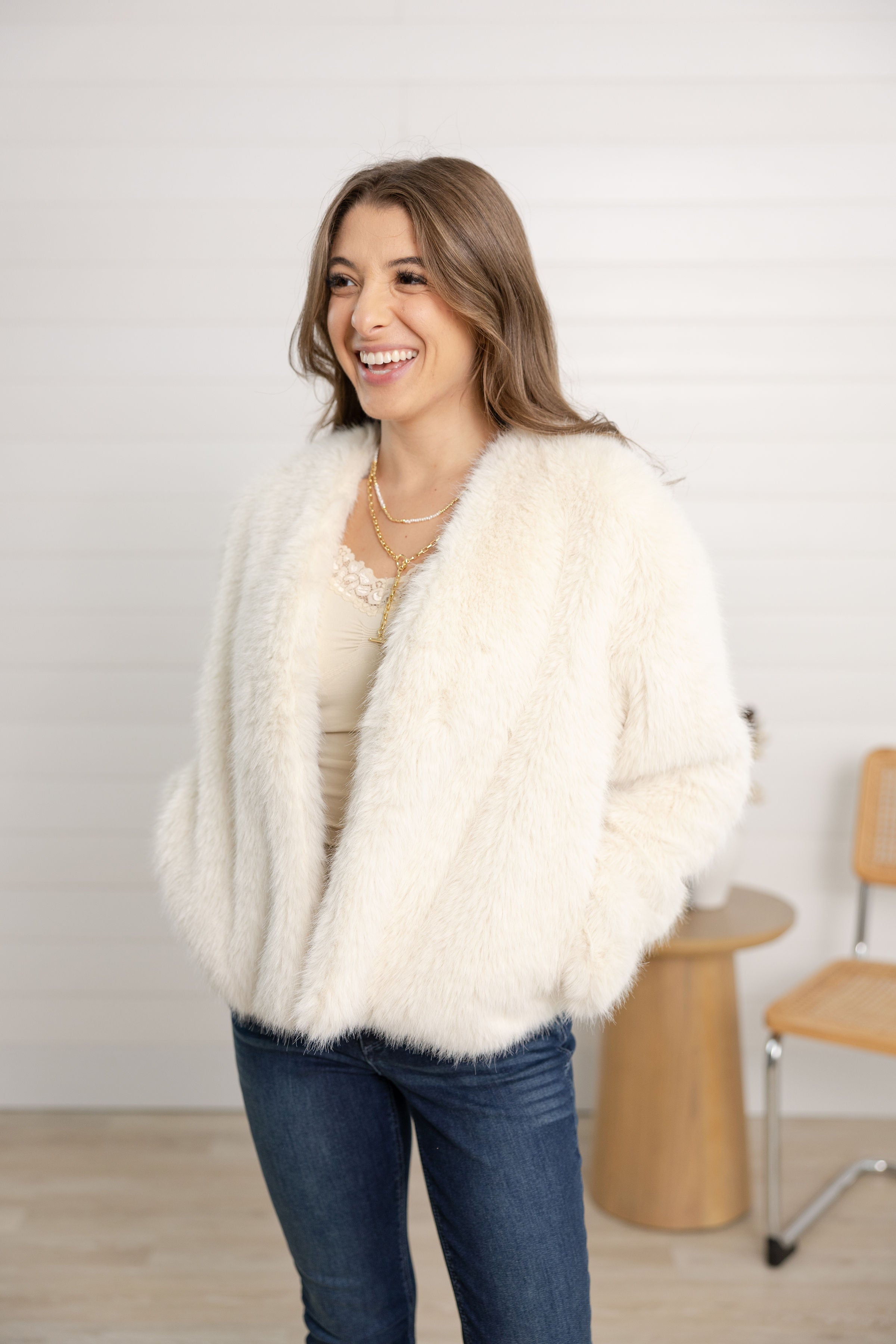 Wrap yourself in pure softness with this Faux Fur Open Jacket โ€” the ultimate blend of luxe and laid-back. Designed with a plush faux fur finish, this open-front style drapes beautifully and feels like a warm hug. Side pockets add a touch of function to the fabulous, making it your go-to piece for adding texture and glam to any outfit.