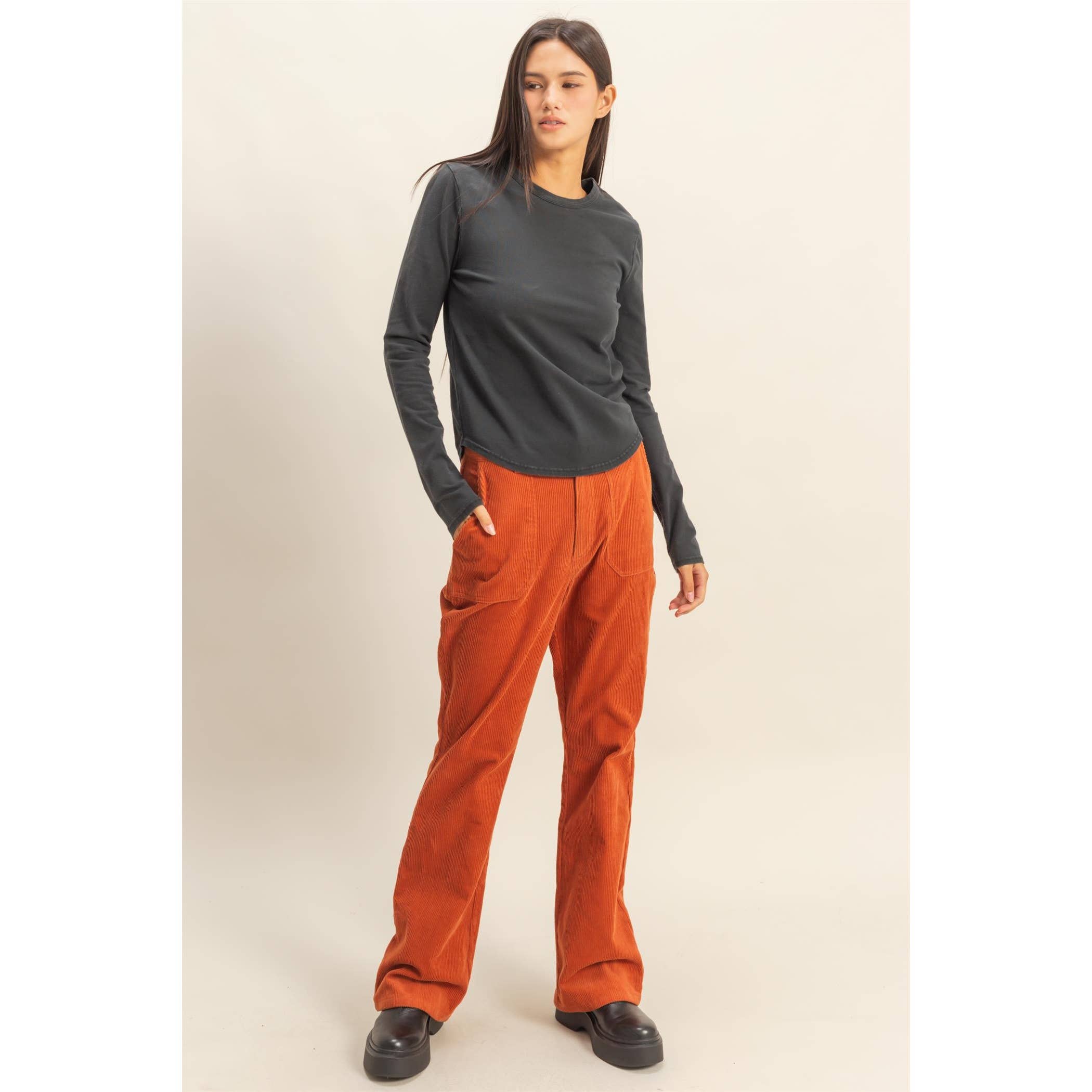 Long Sleeve Round Hem Top