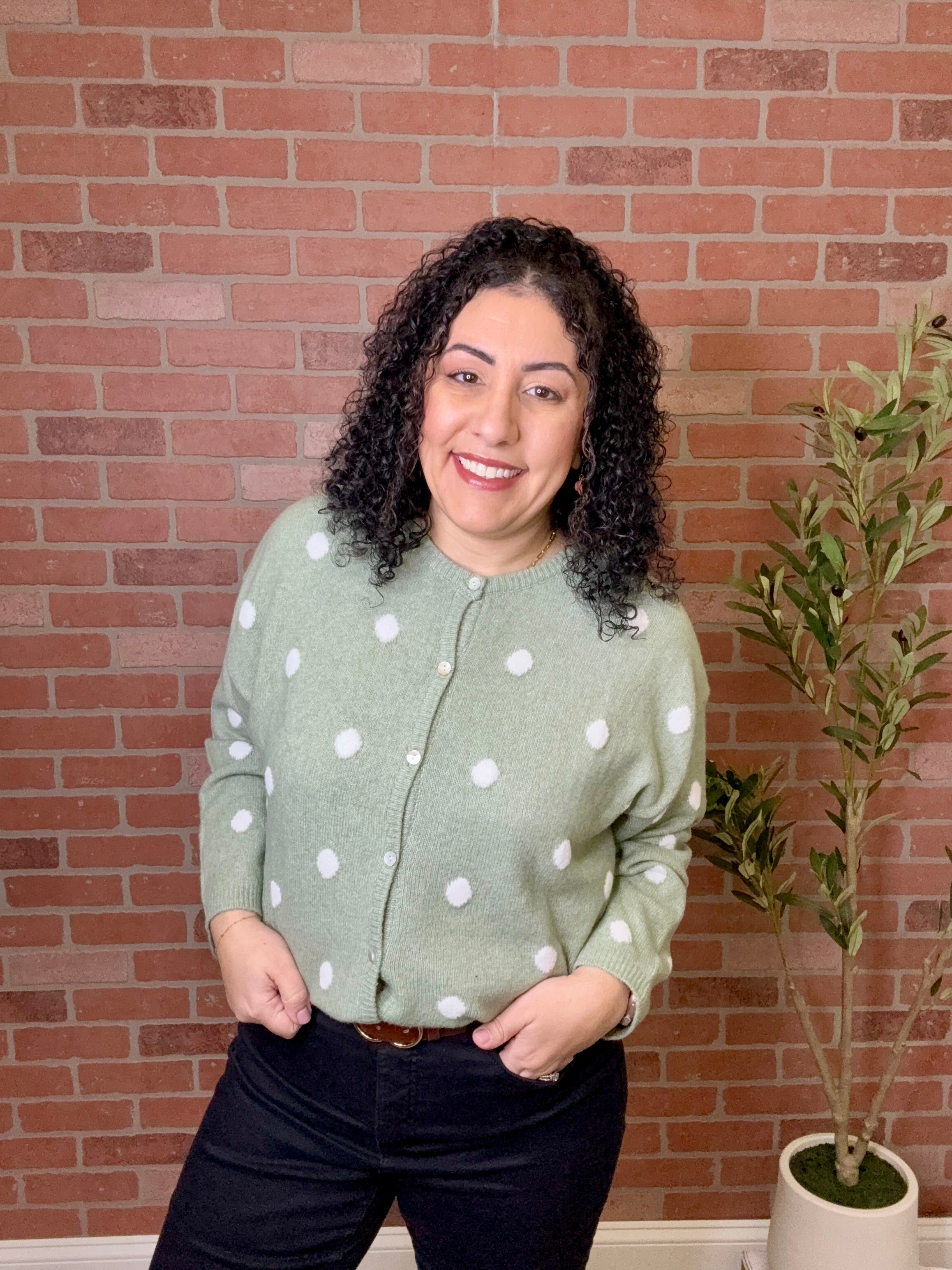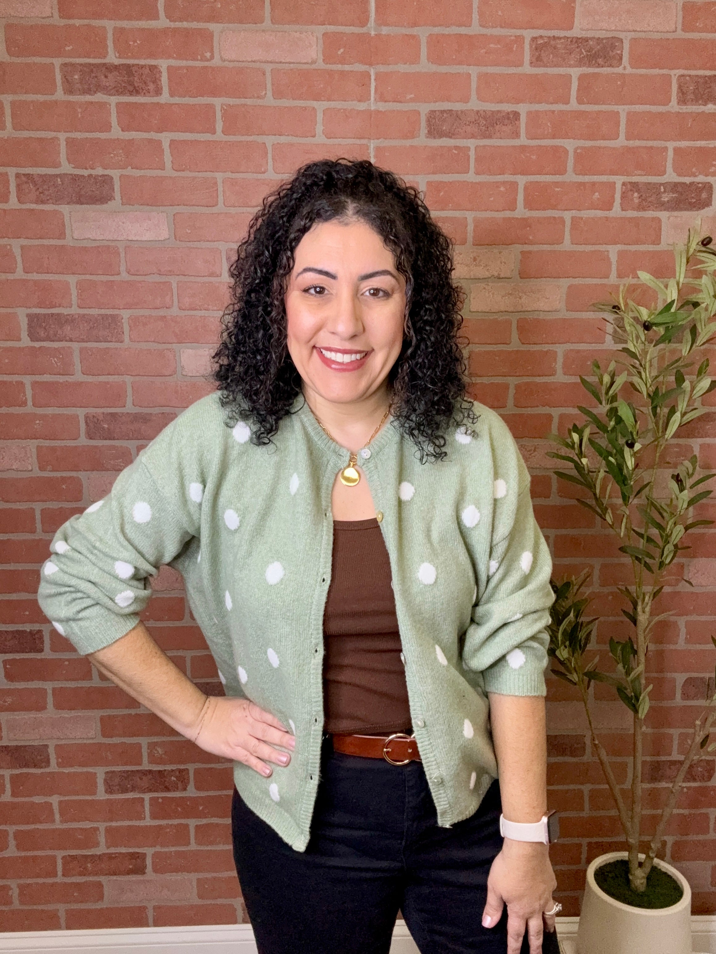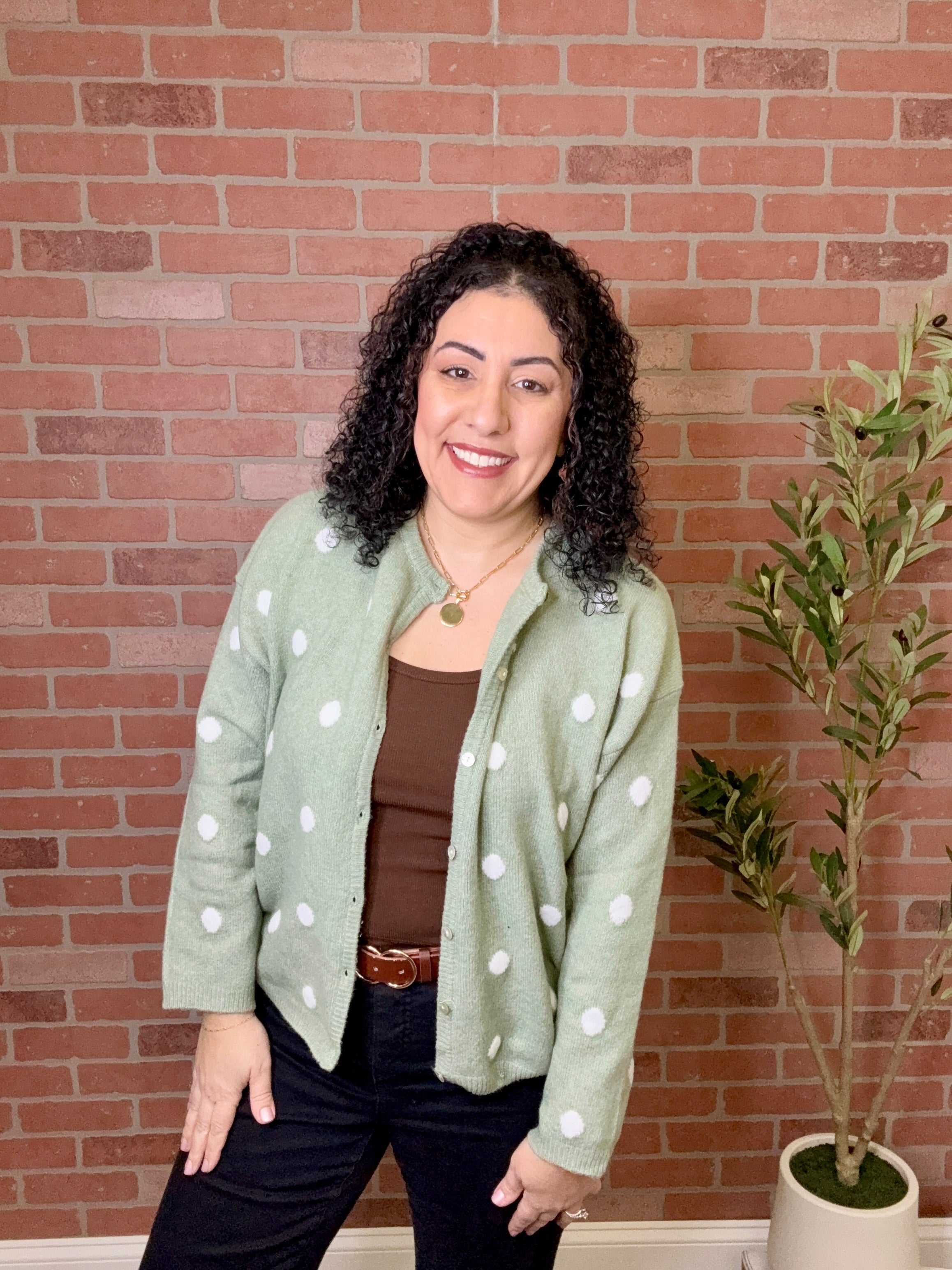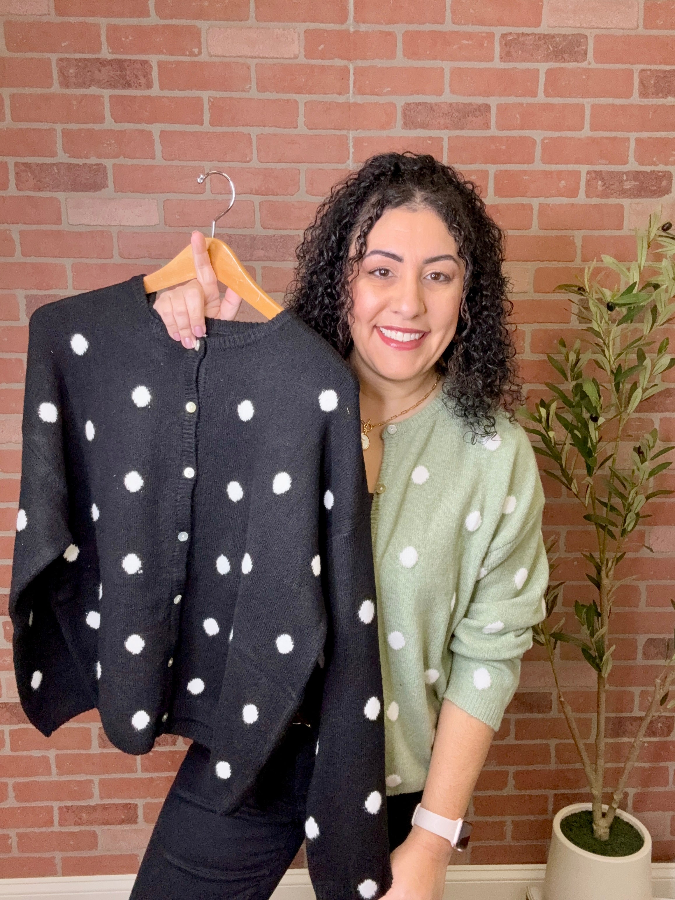 Add a playful yet polished layer to your wardrobe with this ultra-soft polka dot knit cardigan, designed for effortless everyday styling. Featuring a relaxed silhouette, classic button-front closure, and charming allover polka dot pattern, this cozy sweater blends comfort with modern feminine style.