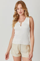 Button Front Henley Tank Top