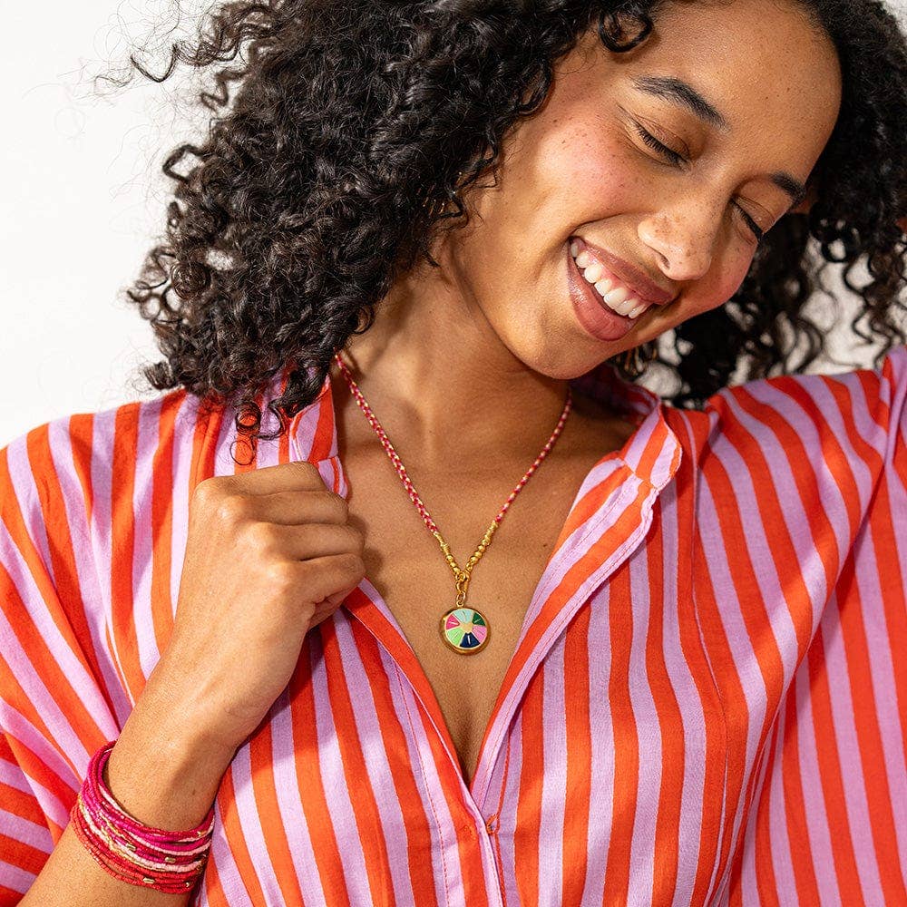 Handmade by skilled artisans in India Hypoallergenic nickel + lead-free brass hardware These accessories are made by human hands. A slight variation in size and color is considered part of the beauty of these one-of-a-kind pieces. To extend the life of your accessories, store them in a dry place while swimming, showering, or working out.Β