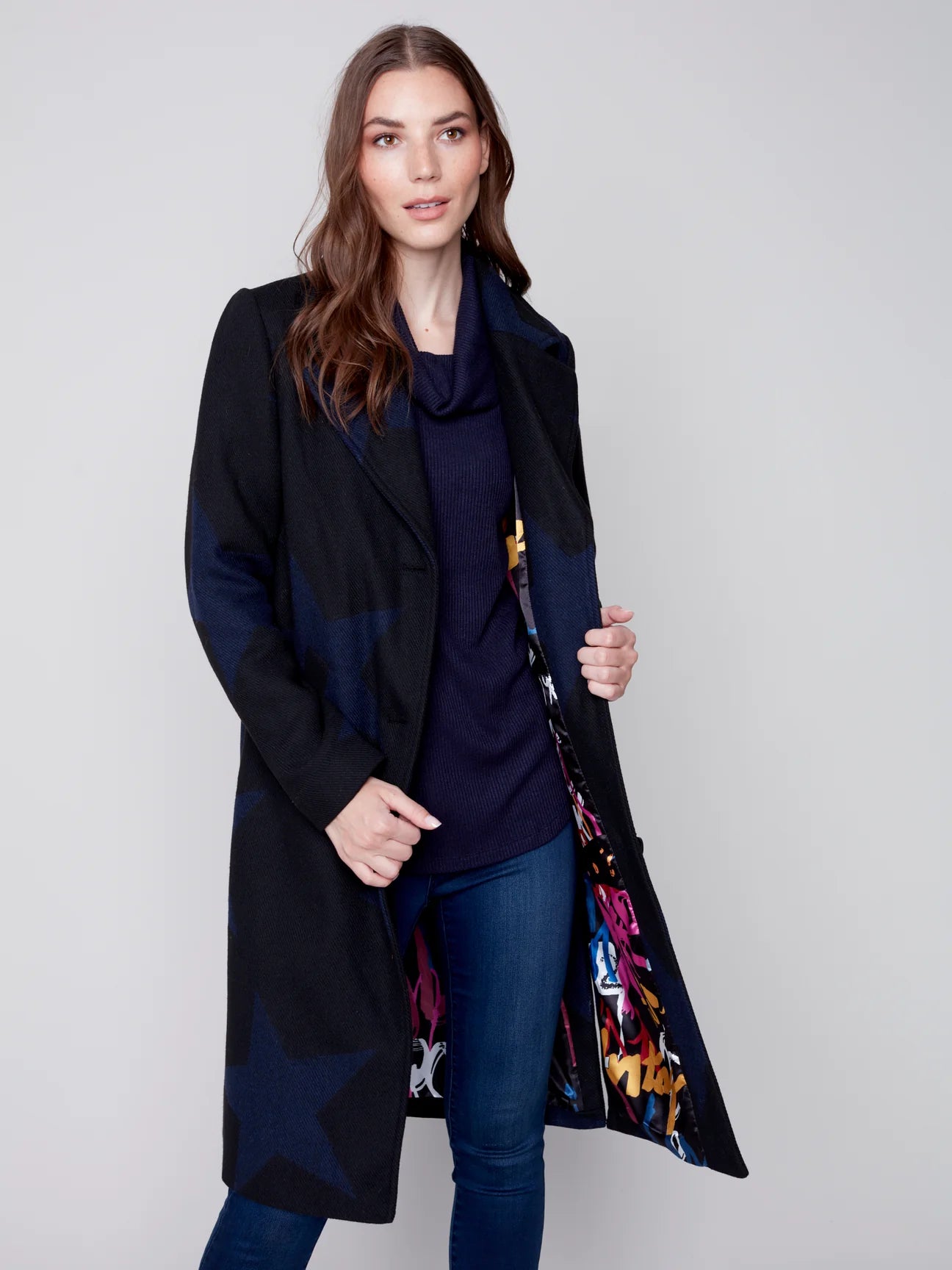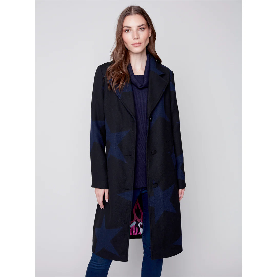 Jacquard Long Star Print Coat