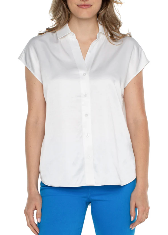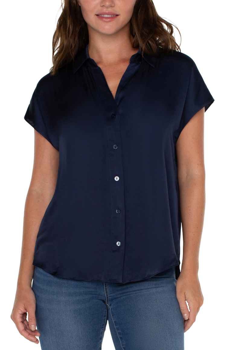Liverpool Satin Dolman Sleeve Button Up Blous