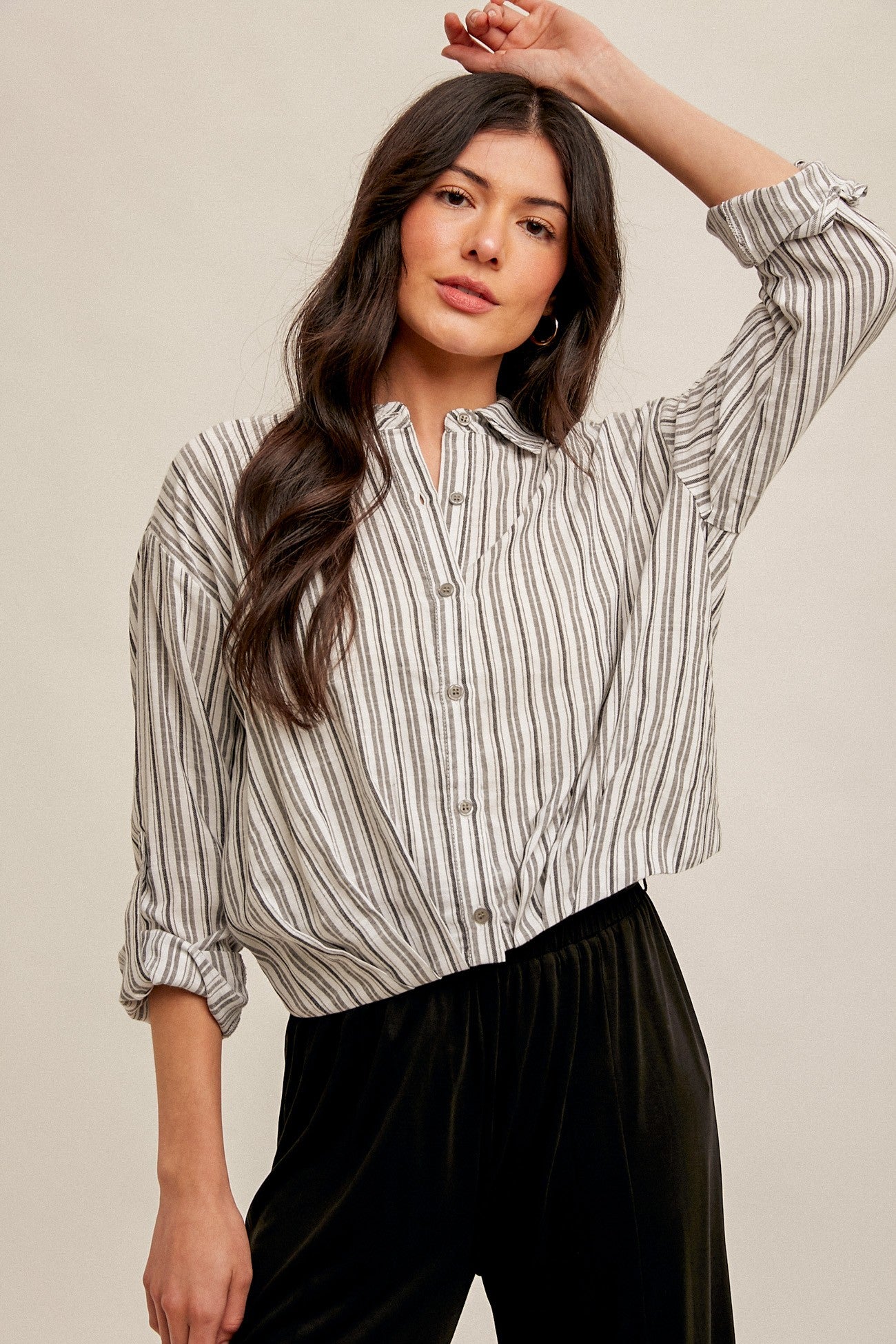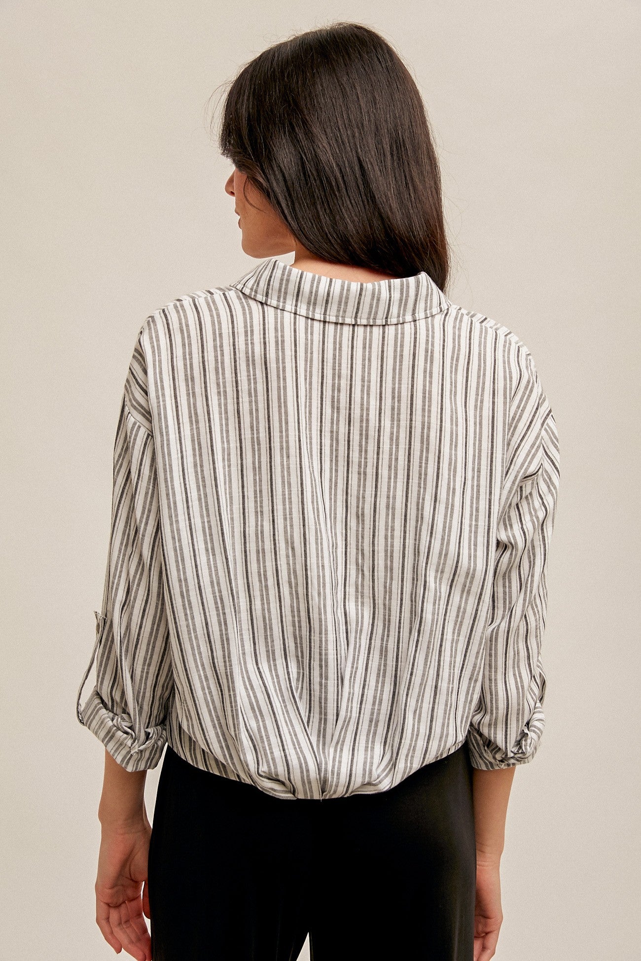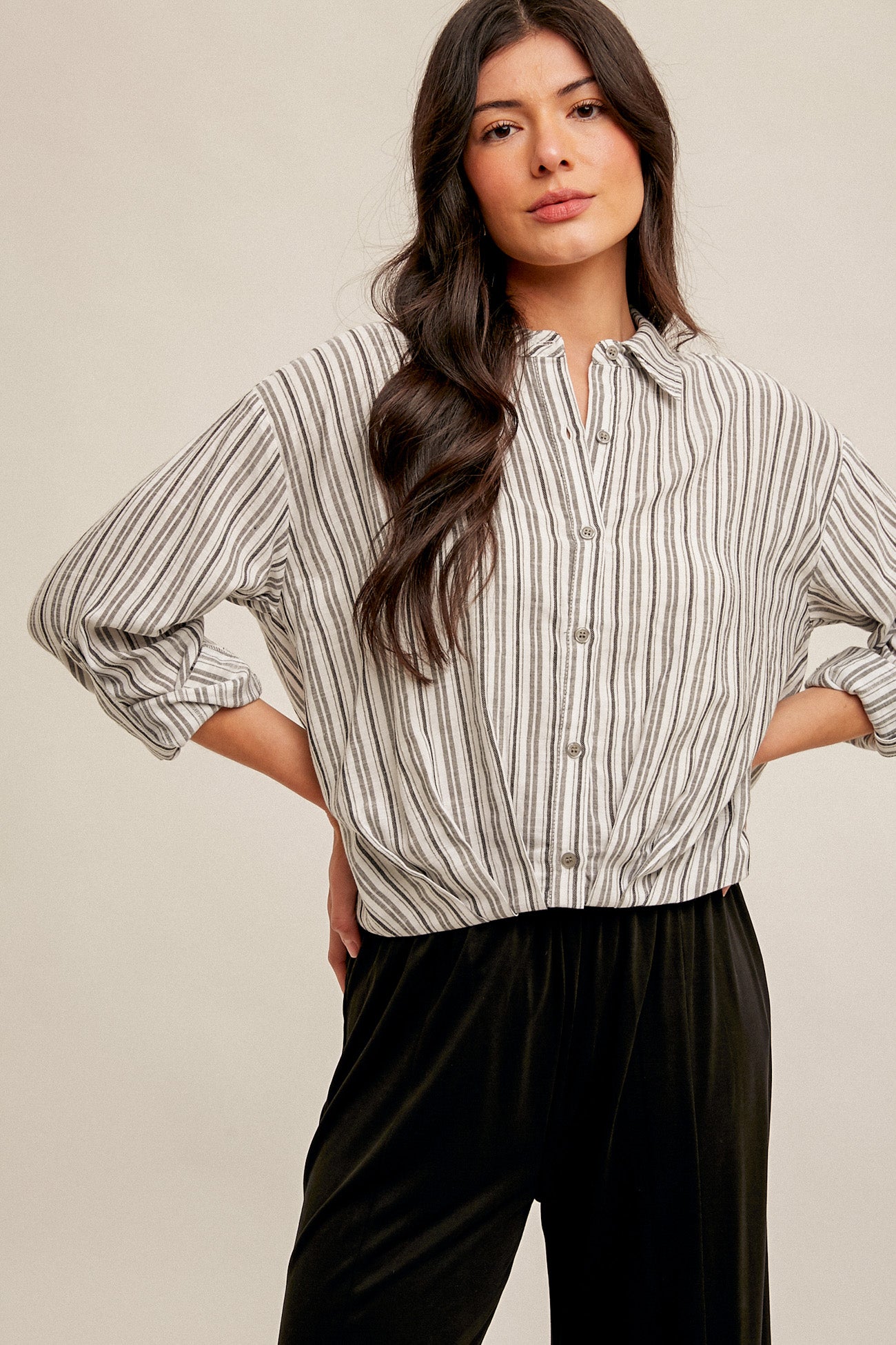 Pleated Hem Stripe Shirt