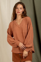 V Neck Waffle Knit Top